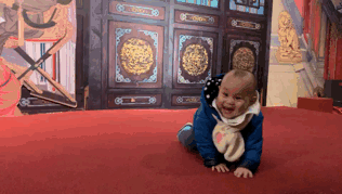 *展厅里乱爬的小孩,引得陌生大人一通拍照*