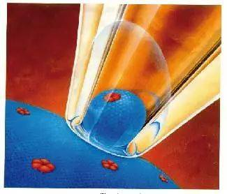 有些电极技术则是更近一步,采用了一种叫膜片钳的技术。膜片钳直接去掉了电极头,只留下个叫作玻璃微量吸管的小管子。膜片钳会把神经元的细胞膜的一小块吸进管子里,来达到更准确的测量。