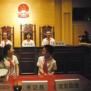 昨日,最高人民法院举办六一儿童节公众开放日活动,孩子们在法庭体验。最高人民法院供图