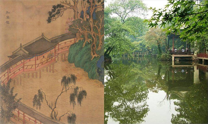 原来在明代的园林中,最中心的那个建筑叫知鱼槛,是在湖的中间。