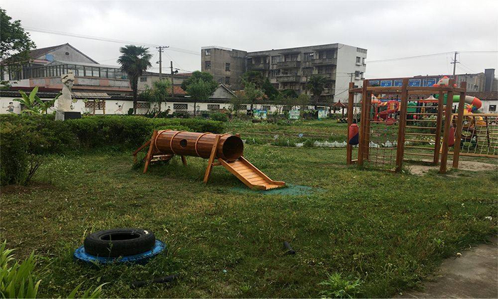 这是现在的遗址,曾经被用做丰利小学,现在变成了一个幼儿园,荒废在这里。正是因为这块地还荒废在这里面,因此有可能政府会同意投资把它复建起来。但是我们也建议在做文园复原的时候,也同时把它的历史街区复原起来。