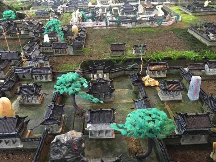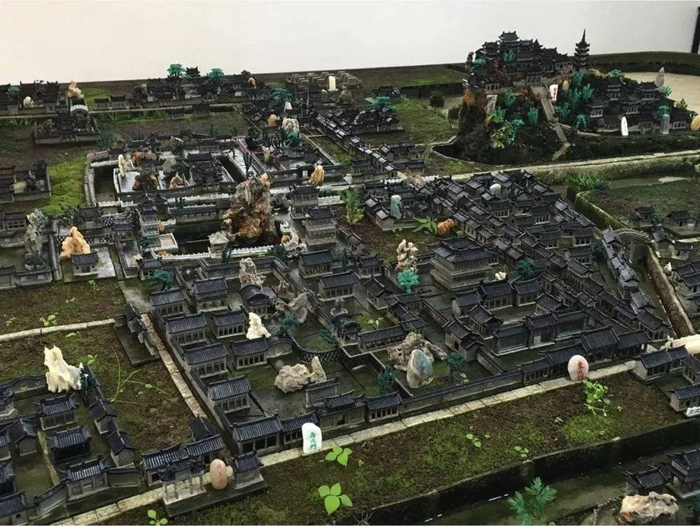 从模型里头我们可以看到,原来整个丰利古镇是非常漂亮的,而且是风格极其统一的这么一个很繁华的镇。在镇中间有庙,有园林,有祠堂,还有其他不同的建筑。