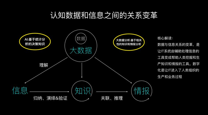 原来我们是基于信息,在信息之上获得知识与情报。而现在,AI和大数据技术的本质都是通过模型获得知识和情报。未来,数据将变成我们获得知识和情报的最基础的原材料。