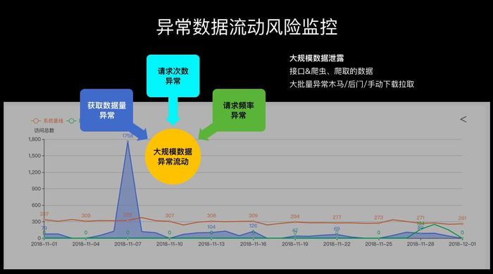 第三就是对数据流动异常、大批量的拉数据、爬虫等风险进行及时的感知,对它进行控制。