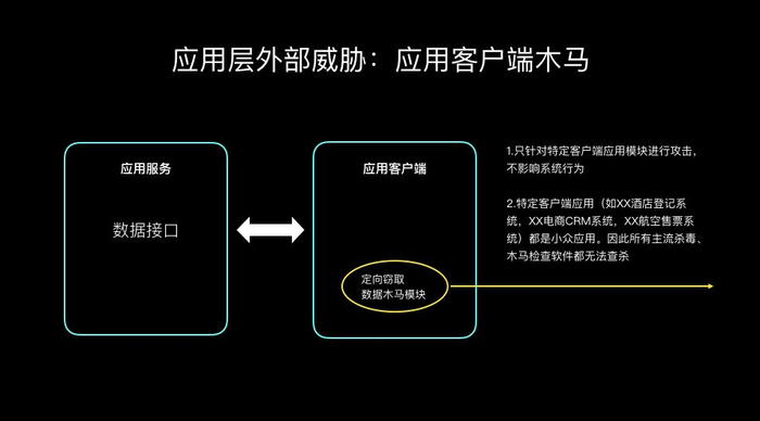 我们以前跟这样的木马做了非常艰难的对抗,很多大型的商业应用都有被专门针对的木马。一些互联网企业在安全上投入非常大,也有专业的技术能力去跟黑灰产对抗,但是其他企业,比如酒店的应用,根本就没有能力保护自己的数据不被这种手段所窃取。