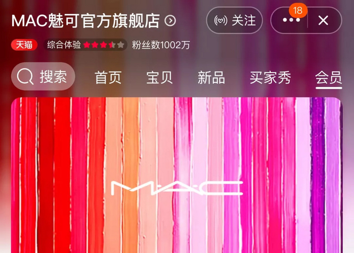 2017年5月,雅诗兰黛集团旗下的MAC正式登陆天猫,推出的子弹头系列堪称“史上最全色号”,还与天猫共同打造“选色卡”,首次真实还原了如此多繁复的色彩,将哑光、润泽、闪亮等不同质感也悉数呈现在消费者面前。据时尚商业快讯监测,MAC天猫旗舰店粉丝已达1002万人,而品牌在中国区线下渠道要积累千万级的会员,大约需要20年时间。