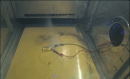 在实验室记者看到,检测人员把一款样品的电池放入试验箱进行测试。仅仅大约20分钟后,这节电池就突然冒烟,紧接着便发生爆炸、起火。