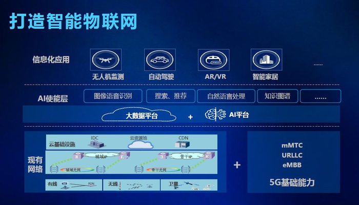 同时,AI技术在网络的本身以及网络生态中发挥着重要的作用。在中国电信看来,基础网络和现有的云业务、以及未来的5G网络的建设,加上AI技术的助力,将构成未来的智能物联网。