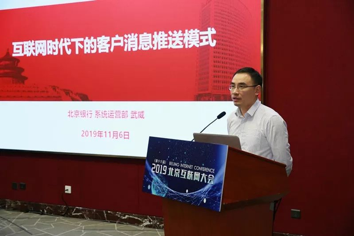 北京银行系统运营部副总经理武威分享了互联网时代下的客户消息推送模式。银行业的常见消息类型有交易结果通知类消息、身份验证类消息和服务类、营销类消息。一般通过短信息、微信、APP等进行消息推送。