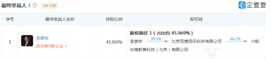 企查查显示,该公司最大股东为百度的运营主体,北京百度网讯科技有限公司,持股比例为46.20%,公司实际控制人为李彦宏,占股比约 45.969%。