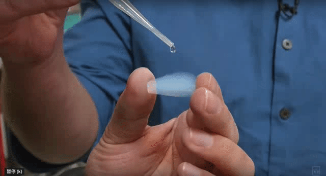 用来制作宇航服的气凝胶,水滴可以迅速地从上面穿透过去,没有丝毫阻碍。