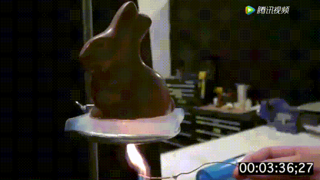 首先是玻璃:1 分 50 秒,巧克力兔子已经融化▼