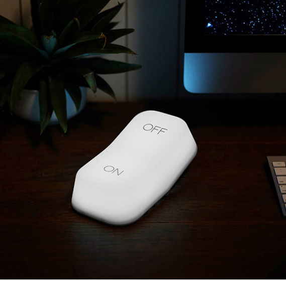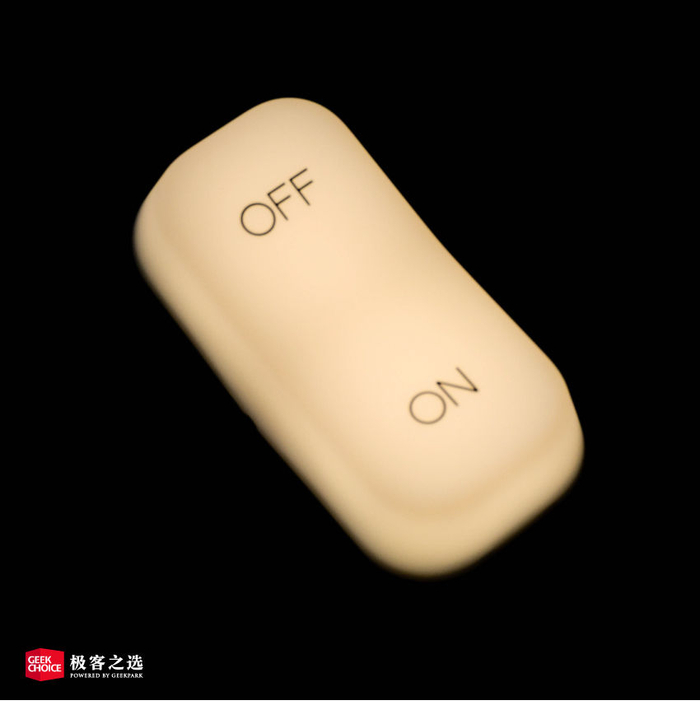 这款夜灯就像是一个超大的开关,只要倒向 ON 灯就会亮起来,倒向 OFF 灯就会随之熄灭。这个本身就是开关的夜灯让你在夜晚摸黑也能快速操作。
