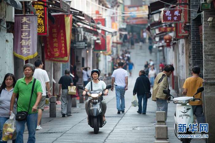 11月18日,人们走在澳门福隆新街上。 新华社记者 张金加 摄