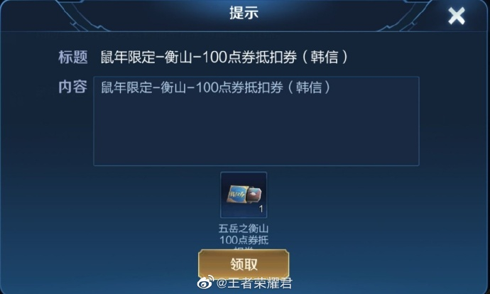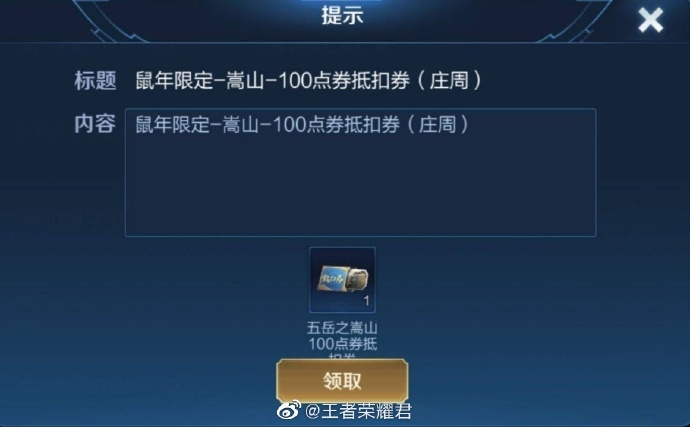 据王者荣耀君消息,近日,有不少玩家在游戏内参与王者创意互动周的蔡文姬弹奏歌曲活动之后,收到了“五岳”皮肤的优惠券,这样一来直接将“五岳”皮肤的所属公布了出来,分别是衡山韩信、华山伽罗S、恒山甄姬、泰山典韦、嵩山庄周。
