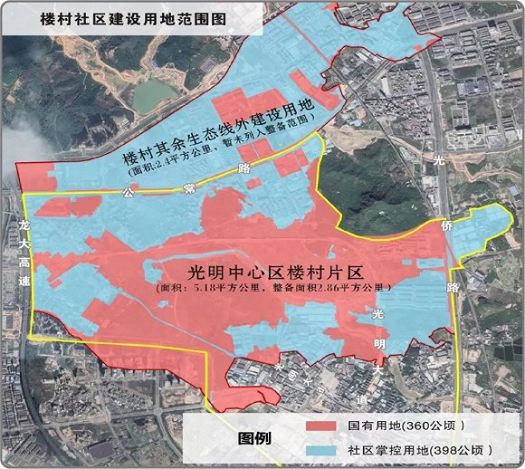 根据规划,楼村片区被划入规划建设范围的面积达5.18平方公里。其中整备面积2.86平方公里(约286万平方米),暂未列入整备范围面积为2.4平方公里。