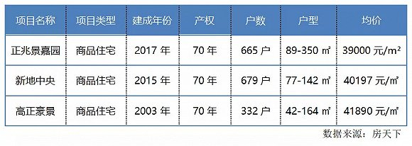 区域内主要商品住宅项目为正兆景嘉园、新地中央和高正豪景,均价在4万/平方米上下浮动,目前仅正兆景嘉园仍有部分户型在售。光明区内其他的热门项目,如华润公园九里花园、龙光玖龙台、绿地新都会等,均不在中心区范围内。