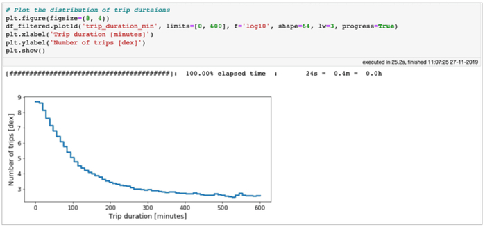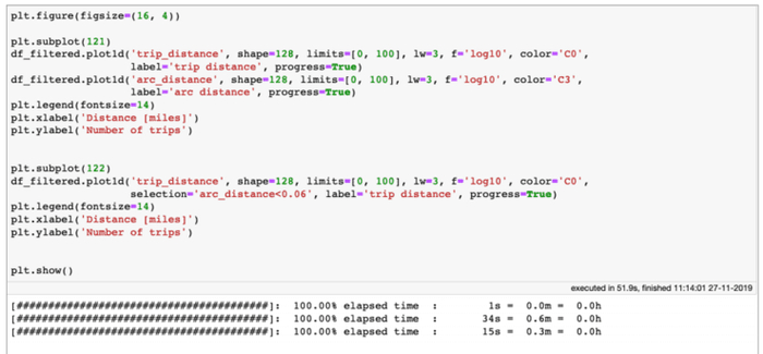 描述方法很好地说明了 Vaex 的功耗和效率:所有这些统计数据都是在我的 MacBook Pro(15", 2018, 2.6GHz Intel Core i7, 32GB RAM)上 3 分钟之内计算出来的。其他的库或方法需要分布式计算或 100GB 以上的云实例来执行相同的计算。有了 Vaex,你所需要的只是数据,你的笔记本电脑只需要几 GB 的内存。
