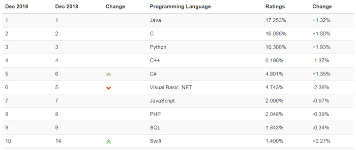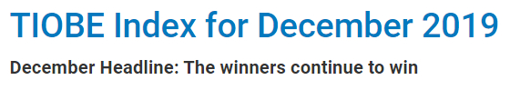 原标题:TIOBE:2019年12月全球编程语言排行榜