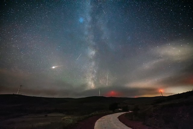 对于我们拍风光的摄影师来说,实际上时间和机会是特别难得的。我举个例子,比如说有一张是去年拍的英仙座流星雨,当时北京那段时间一直在下大雨,流星雨的一般就只有一晚上,就是这个高峰期只有一晚上,然后我们就去了内蒙、锡林郭勒。然后拍的时候结果开始下暴雨,那一天是黄色预警,我们想着那天拍摄应该已经没有希望了。