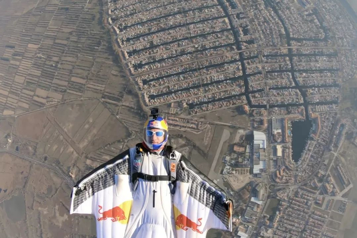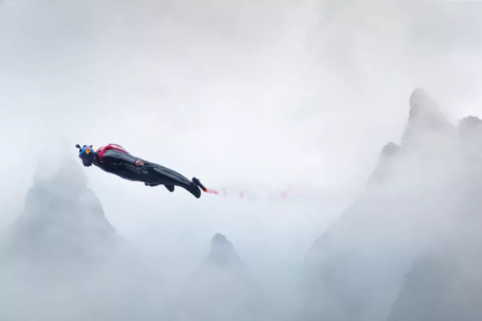 是极限运动中非常高难度的项目。美国翼装飞行员Jeb Corliss翼装穿越天门洞