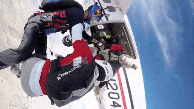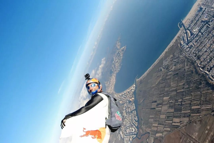 翼装飞行其实是没有动力的,需要在飞机上或悬崖这样的高处,张开双臂一跃而下,向下俯冲的时候,速度特别快,时速可以达到200公里,这时空气会充入翼装飞行服,人可以靠着身体的摆动控制方向,像鸟一样在空中飞。