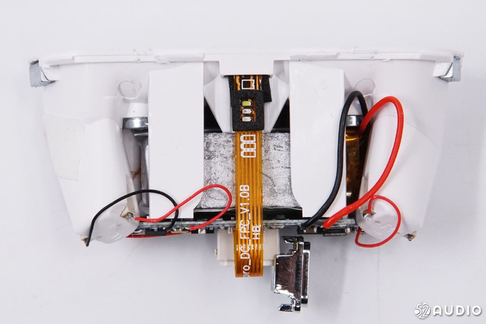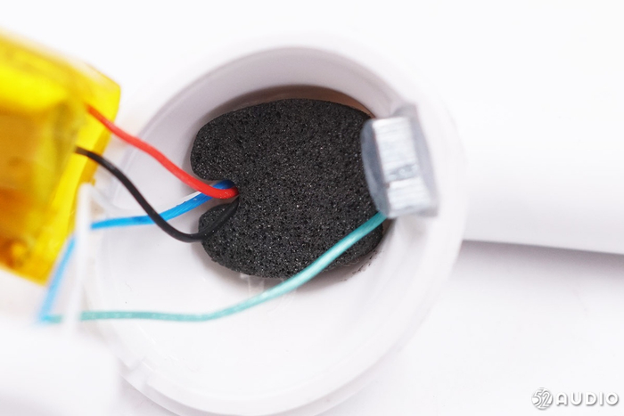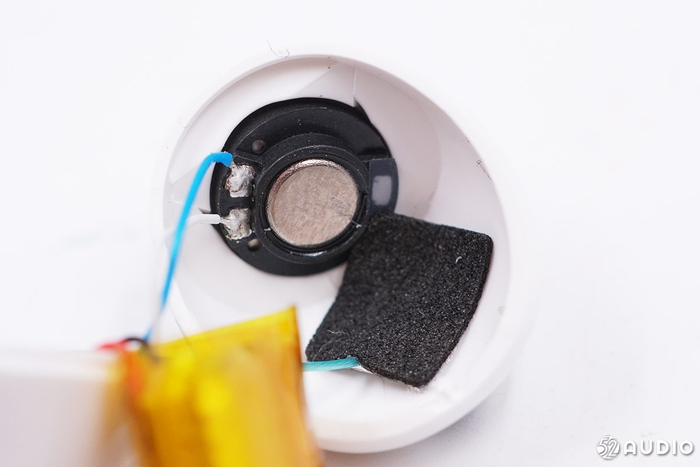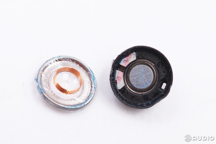 耳机采用动圈扬声器,金属线圈,塑料振膜。