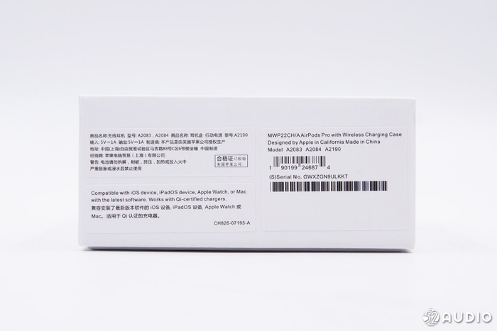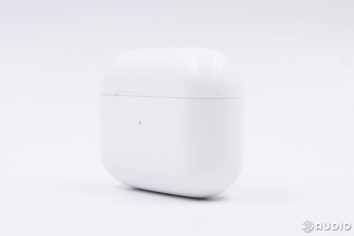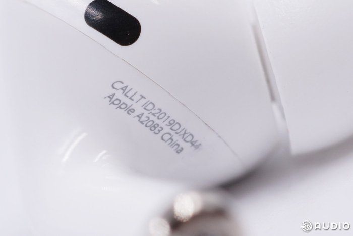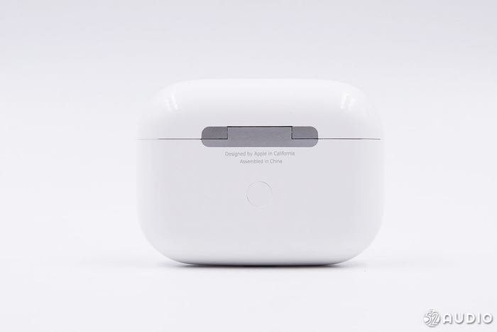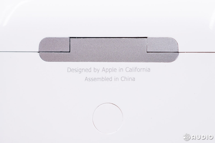 充电盒背面合页不够精致,Designed by Apple in California Assembled in China字体为印制,不够清晰锐利,正品为激光镭刻。