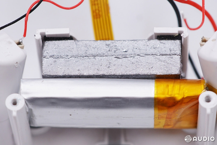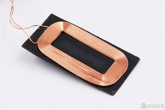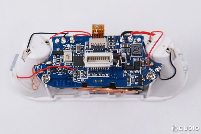 充电盒锂电池位于中框的中部,无线充电线圈背面。