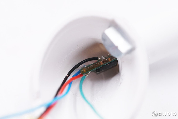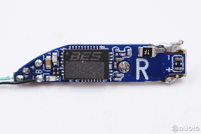 耳机主板背面特写。主控芯片采用BES方案,主控芯片部分被规整打磨,无法知悉具体型号。