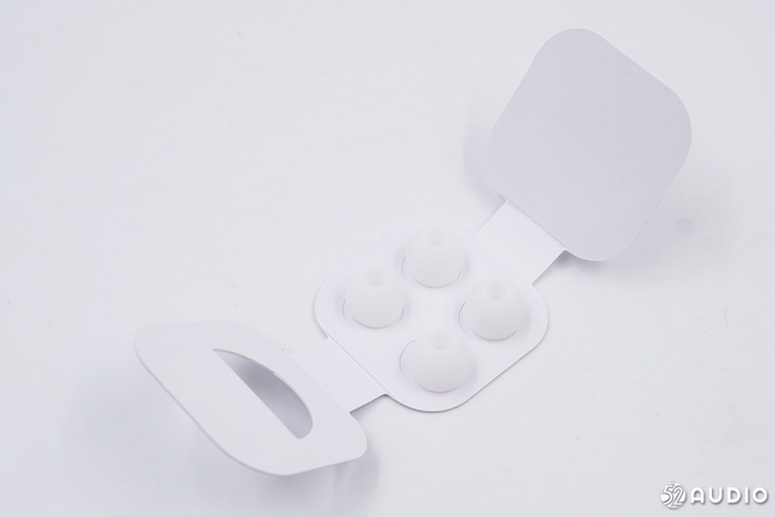附送两副相同的小尺寸白色硅胶耳塞,这个耳塞没有正品耳塞的防尘网设计。