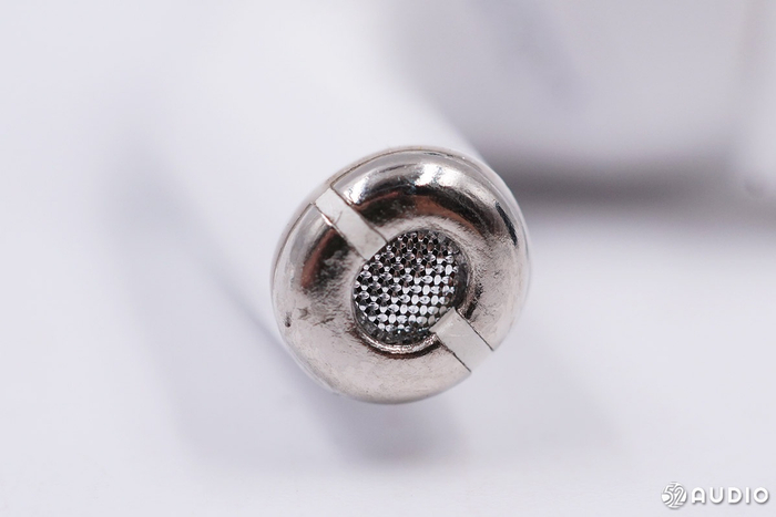 麦克风出音孔特写,有丝网覆盖。造型明显与正品不同。