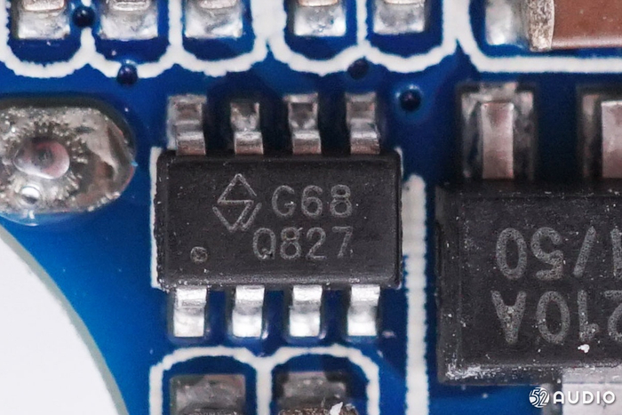 丝印AR9n1霍尔元件,用于检测充电盒开合状态。