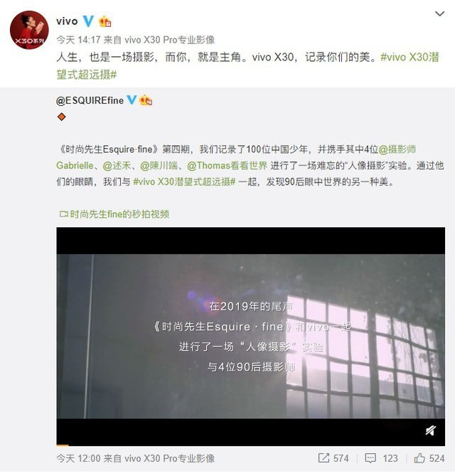 而vivo X30 Pro和《时尚先生 fine》的这次合作,也正是基于其产品能够真正实现将摄影师的复杂内心世界完美表达。