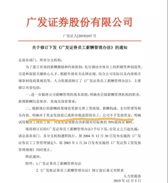 原标题:明确离职员工不发奖金!广发证券被推向风口浪尖!谁是谁非?行业有何普遍做法