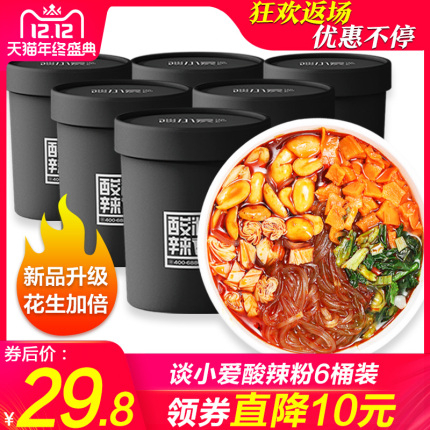 辣爽到底,谈小爱旗舰店酸辣粉6桶装29.8元