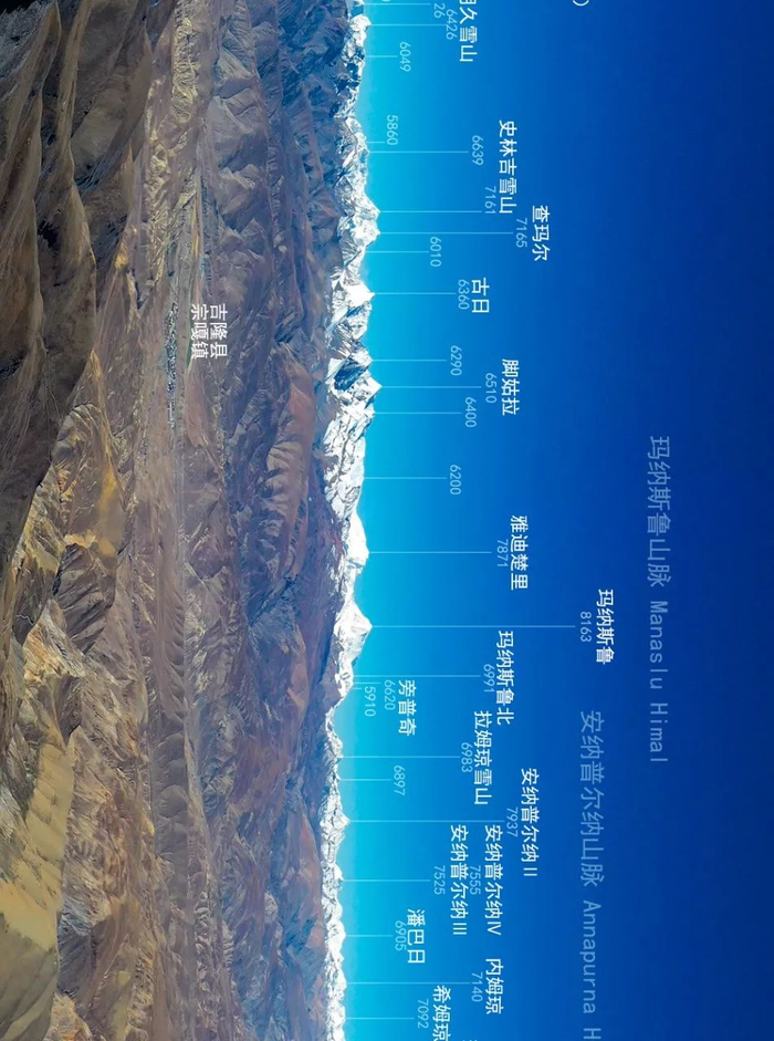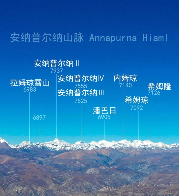 首先是安娜普尔纳山脉,包括山峰8000米以上的1座、7000米以上的13座、6000米以上16座。