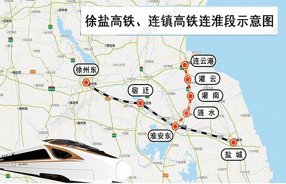 徐盐高铁、连镇高铁连淮段通过徐州铁路枢纽连接京沪高铁、郑徐高铁,在连云港、盐城分别接入青盐铁路,将有助于缓解京沪高铁最繁忙的南段运输压力。