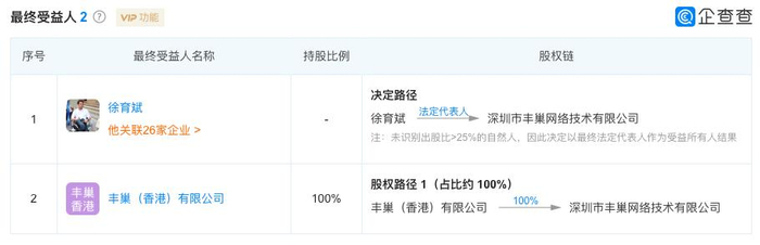 企查查显示,深圳市丰巢网络技术有限公司成立于2019年7月24日,注册资本为30.49亿元,法定代表人为丰巢科技创始人兼CEO徐育斌,由丰巢(香港)有限公司100%持股。丰巢(香港)成立日期为2018年8月6日,是一家在香港注册的私人股份有限公司。