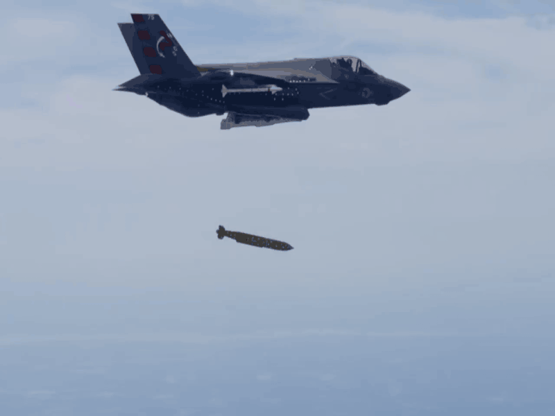 资料图片:美海军F-35C战机投放AGM-154C1防区外滑翔制导炸弹。