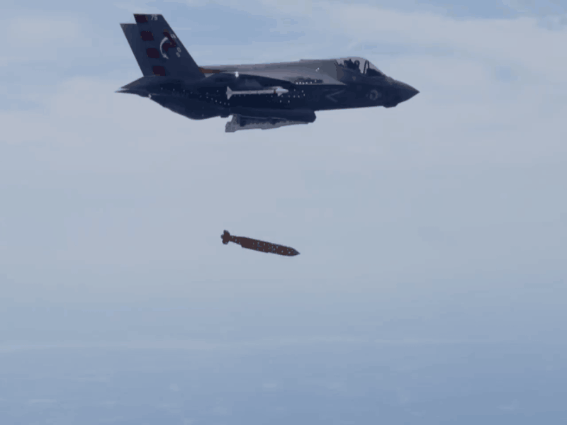 资料图片:美海军F-35C战机投放AGM-154C1防区外滑翔制导炸弹。