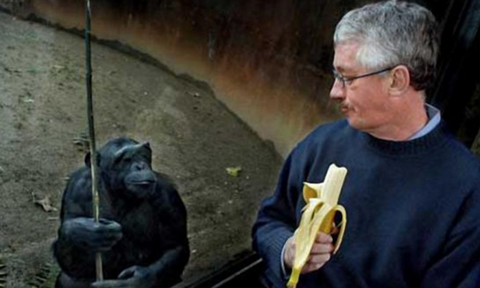 德瓦尔和黑猩猩对视。(meetinnovators.com)