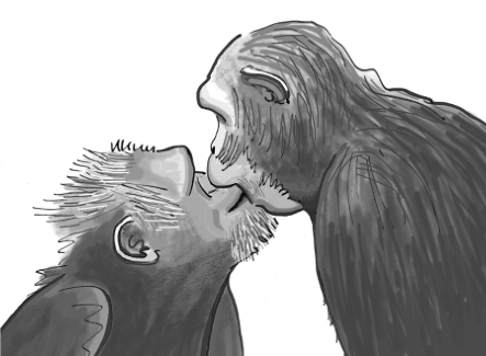 凯芙做得很棒,它甚至懂得在幼崽打嗝的时候把奶瓶暂时拿开,并且日夜将幼崽护在怀中。在这个项目里,每天白天,我们都会叫凯芙和幼崽进屋喂一次奶,这个时候猩群里的其他黑猩猩通常都在户外活动。一段日子后,我们注意到凯芙每次并不会直接进屋,而是会绕一段长长的远路。进屋前,它会走遍整个黑猩猩岛,与雄性和雌性首领还有它的好朋友们一一吻别。倘若其中某些黑猩猩在睡觉,凯芙会将它们唤醒进行告别。这一行为与弗朗尼娅的情形相似——行为本身相当简单,但在这一特定环境下却引人深思,令人好奇这背后的认知机制是什么。与弗朗尼娅一样,凯芙似乎也懂得为未来考虑。