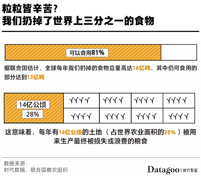 从全球范围来看,FAO数据显示,我们每年扔掉了世界上三分之一的食物。