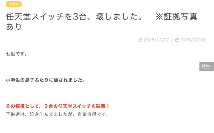 在2018年12月的文章中,七里信一描述了“怒砸3台Swtich”事件的前因后果: