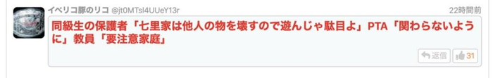 在日本社会,这种家长、老师、PTA让其他孩子“注意”七里一家的状况是很可能出现的