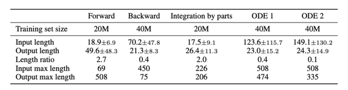 要训练网络模型,就需要有(问题,解决方案)对的数据集。理想情况下,我们应该生成问题空间的代表性样本,即随机生成要积分的函数和要求解的微分方程。但我们知道,并不是所有的函数都能够积分(例如f=exp(x^2)和f=log(log(x)))。为了生成大型的训练集,作者提出了一些技巧。