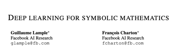 雷锋网(公众号:雷锋网) AI 科技评论按:近日,Facebook AI研究院的Guillaume Lample 和Francois Charton两人在arxiv上发表了一篇论文,标题为《Deep Learning for Symbolic Matehmatics》。