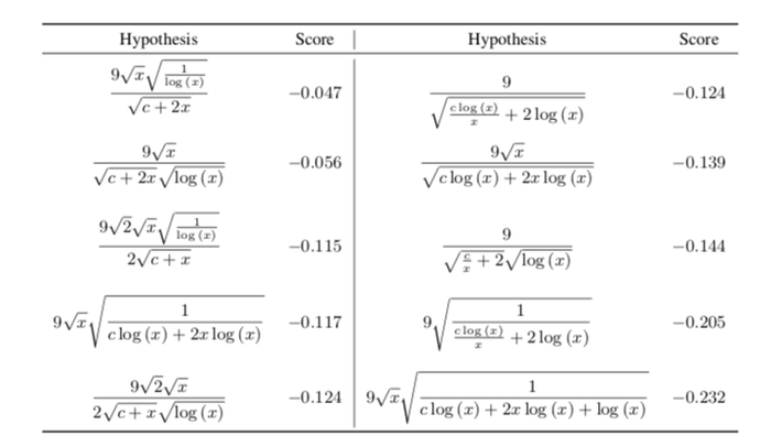 在推断过程中,作者使用了带有early stopping的beam搜索方法来生成表达式,并通过序列长度来归一化beam中假设的对数似然分数。
