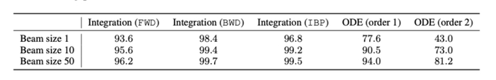 由于对表达式是否正确可以很容易地进行验证,因此作者提出如果生成的beam中的表达式中,只要有一个正确,则表示模型成功解决了输入方程(而不是只选用得分最高的)。例如当 beam =10时,也即生成 10 个可能的解,只要有一个正确即表明模型成功输出结果正确。
